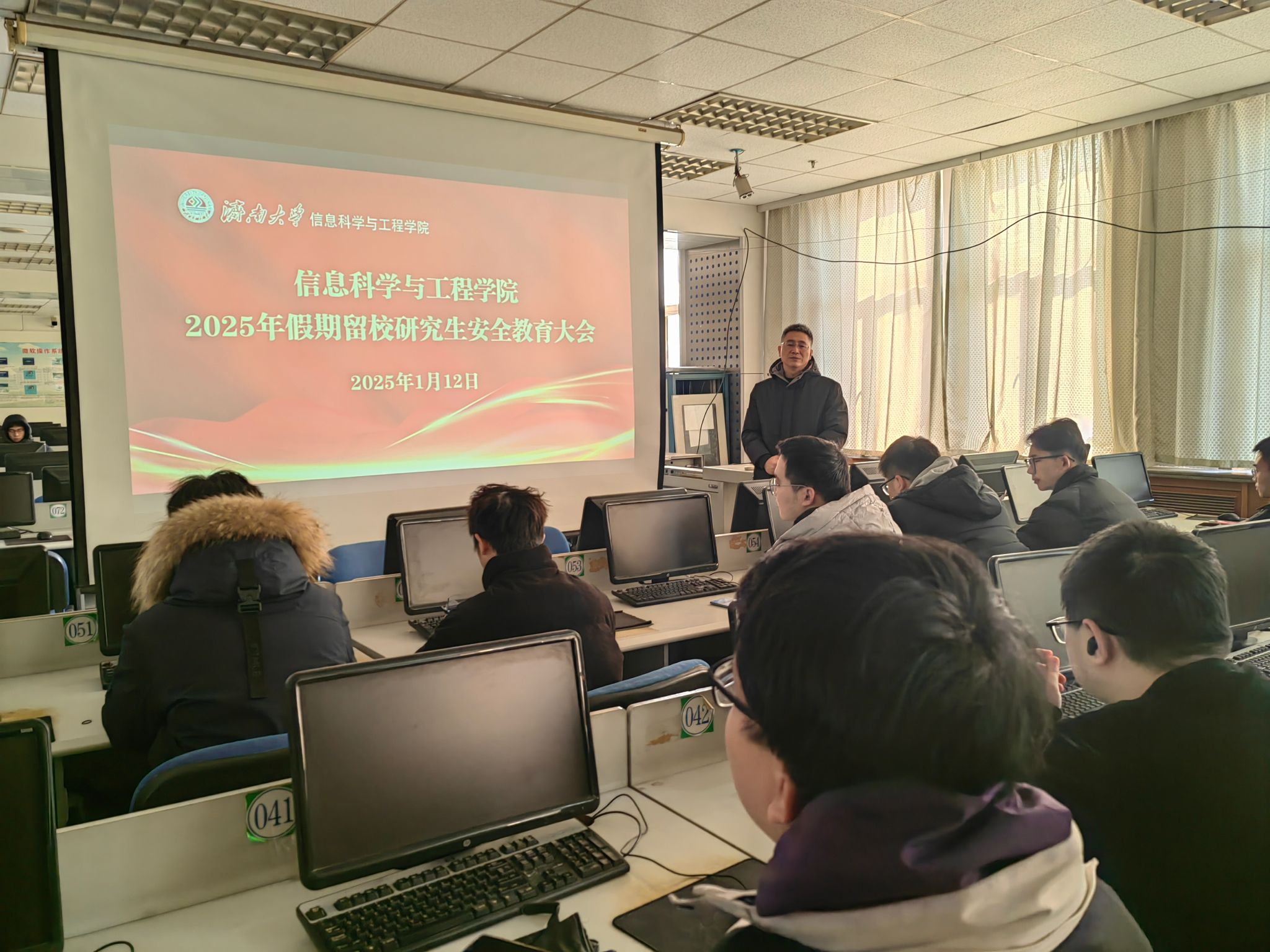 为贯彻落实学校安全工作会议精神,切实做好2025年寒假留校研究生安全教育和管理工作,增强学生安全防范意识和避险能力,1月12日上午,太阳成集团tyc151cc召开2025年寒假留校研究生安全教育大会。学院领导班子成员出席会议,实验室中心主任孙传伟、研究生辅导员付颖颖及235名假期留校研究生参加会议。