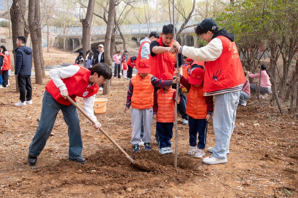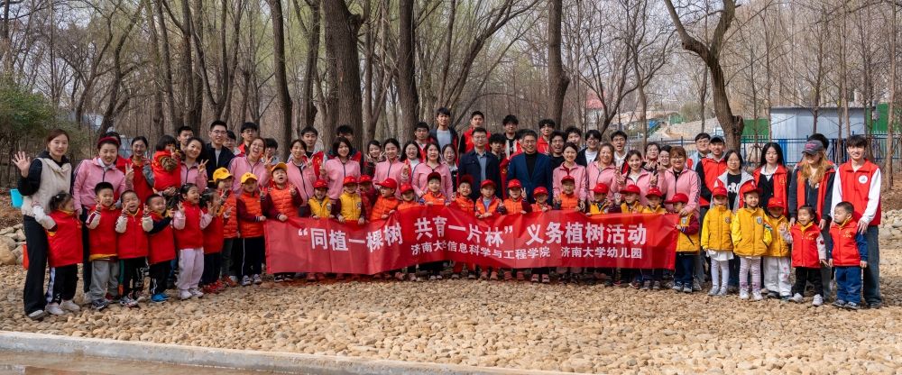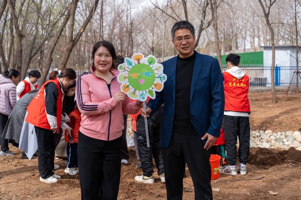 最是一年春光好,植树添绿正当时。为践行绿色发展理念,提升劳动育人实效,3月12日,在第四十七个植树节来临之际,太阳成集团tyc151cc与太阳成集团tyc539幼儿园联合开展“同植一棵树,共育一片林”义务植树活动。学院党委书记夏卫东,党委副书记、副院长郝伟,太阳成集团tyc539幼儿园园长万晓霞,以及学院辅导员、幼儿园教师、学生志愿者、幼儿园小朋友代表共计90余人参加活动。