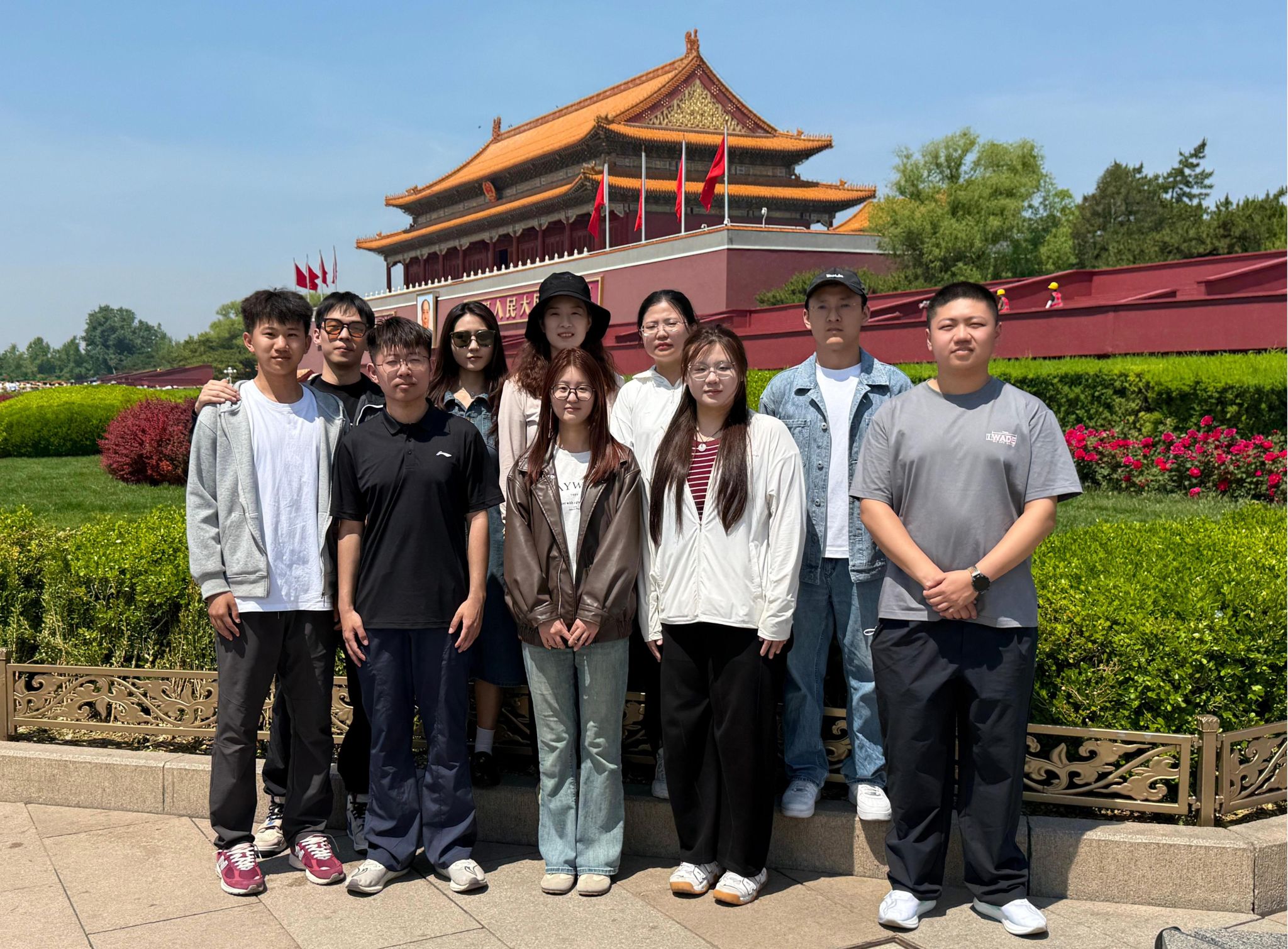 随后的行程中,师生前往天安门观看了升旗仪式。看着三军仪仗队员们身着戎装,昂首挺胸,迈着整齐而坚定的步伐,护送鲜艳的五星红旗至升旗台。雄伟的国歌奏响,五星红旗冉冉升起,全体师生庄严肃立,行注目礼,心中激情澎湃。