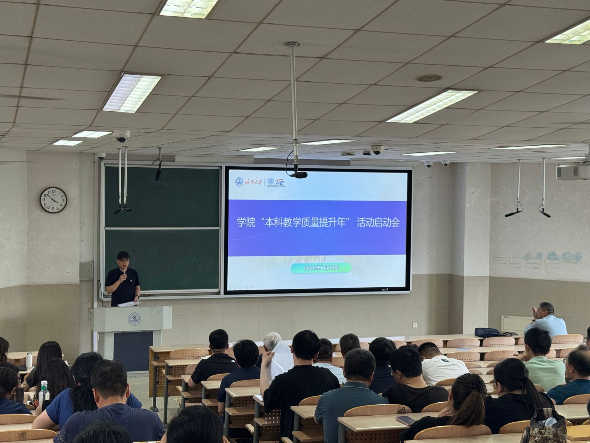 荆山传达了学校“本科教学质量提升年”活动实施方案,并结合质量文化浸润、专业内涵提升、课程建设升级等十大专项行动,详细解读了学院“本科教学质量提升年”活动安排和任务清单,部署了5月份本科教学重点推进工作,号召全体教师认真落实相关任务,积极推动学院本科教学质量提升,为学院高质量发展贡献力量。