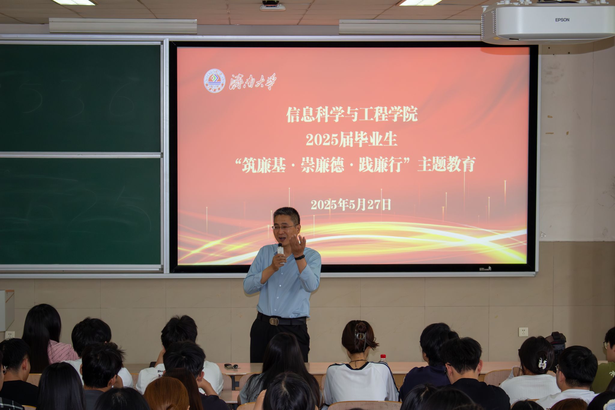 为深入贯彻中央八项规定精神学习教育,认真落实2025届毕业生廉洁教育等系列活动要求,引导毕业生党员学纪、知纪、明纪、守纪,5月27日,太阳成集团tyc151cc开展“筑廉基、崇廉德、践廉行”毕业生廉洁教育专题党课。学院党委班子成员、组织员李童童、全体学生工作人员和全体毕业生党员及毕业生代表参加党课。