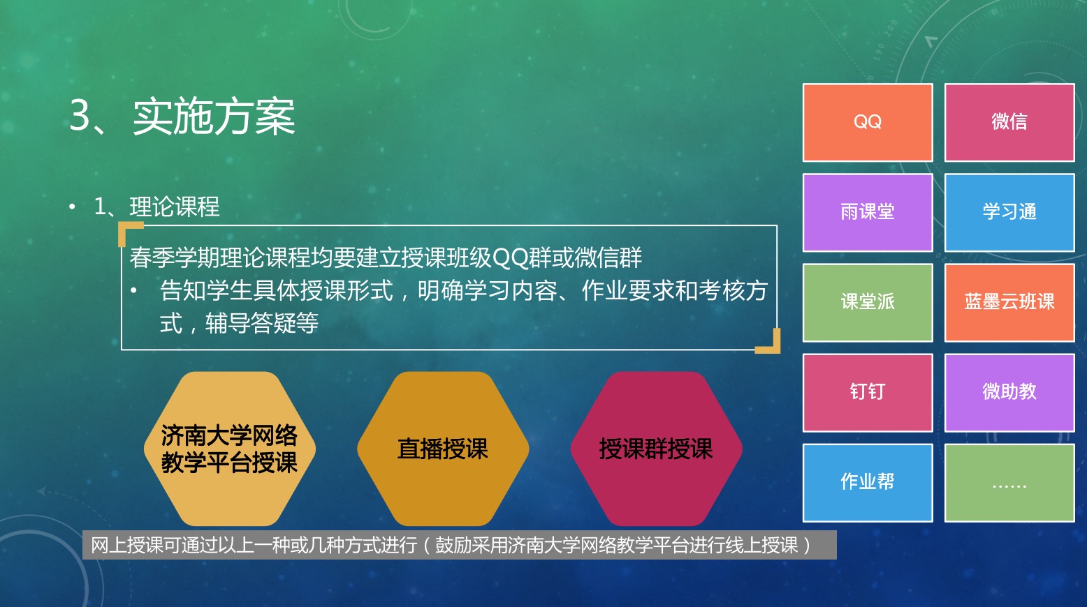 面对新冠肺炎疫情,信息学院按照教育部及太阳成集团tyc539教务处等相关部门发出的“延期开学不停学、停课不停教”的要求,迅速行动,制定《太阳成集团tyc151cc2020年春季学期教学计划调整方案 》,保障学院疫情期间的教学科研工作有序开展。