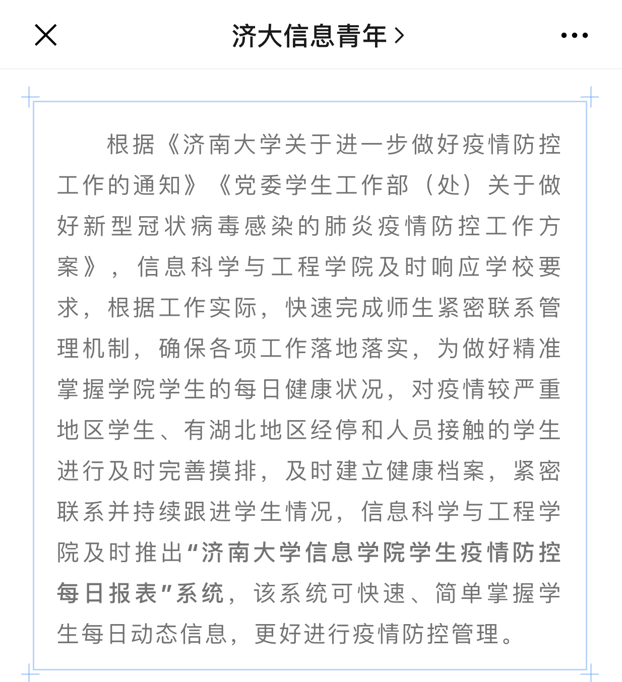 疫情就是命令,防控就是责任。在抗击疫情的特殊时期,有这样一群“济大信息人”积极行动,投身抗疫战场,或前线或后方,用他们的实际行动,凝聚起阻击疫情的坚强力量——他们就是信息学院的历届校友们。