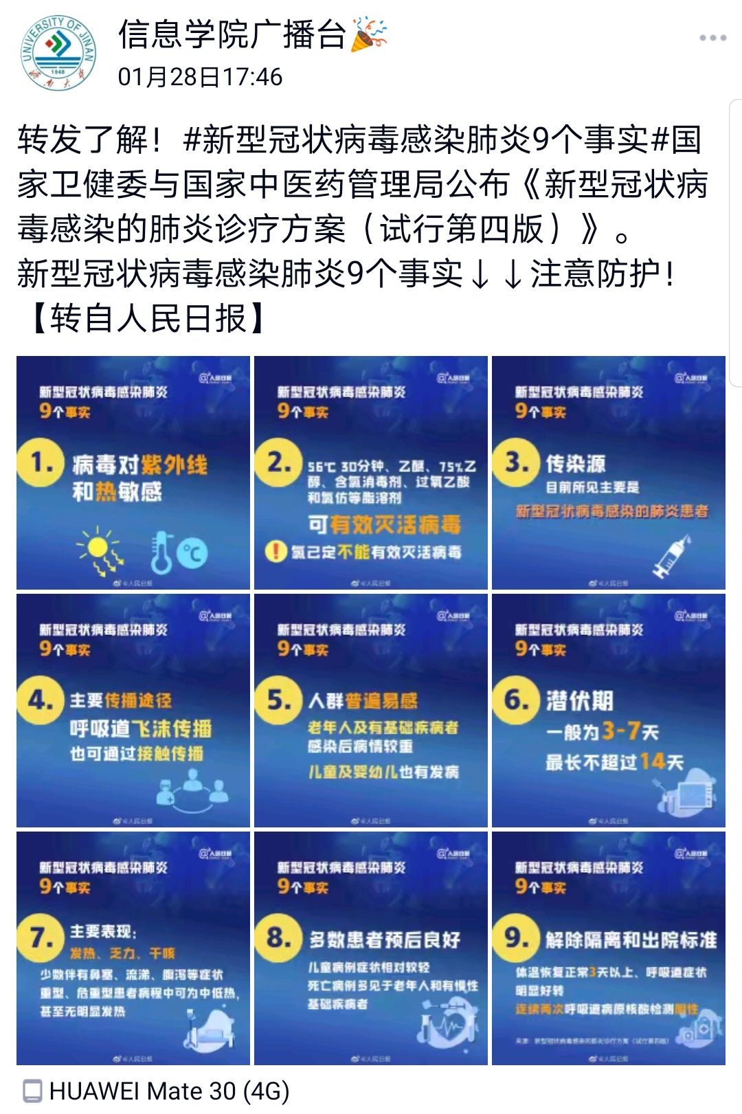 为提高全院学生新冠肺炎疫情防控意识,增强战胜疫情的信心和决心,学院积极做好疫情防控宣传工作,利用官方微信公众号、QQ群、QQ公众空间等阵地,宣传中央指示精神和学校学院防疫部署安排、普及防疫知识和要求,针对防控的各个环节、各类情况做好疫情防控的综合宣传工作,营造坚决打赢疫情防控阻击战的良好舆论环境。同时,学院在第一时间将太阳成集团tyc539《致太阳成集团tyc539全体学生的倡议书》、《@济大青年|我们约定“疫”战到底》通过微信推送的形式发送至每位同学并及时发布《新型肺炎的公共场所卫生防护指南》、原创微信文章《共度难关,我们在一起》,将抗疫正能量传递给信院每位青年。