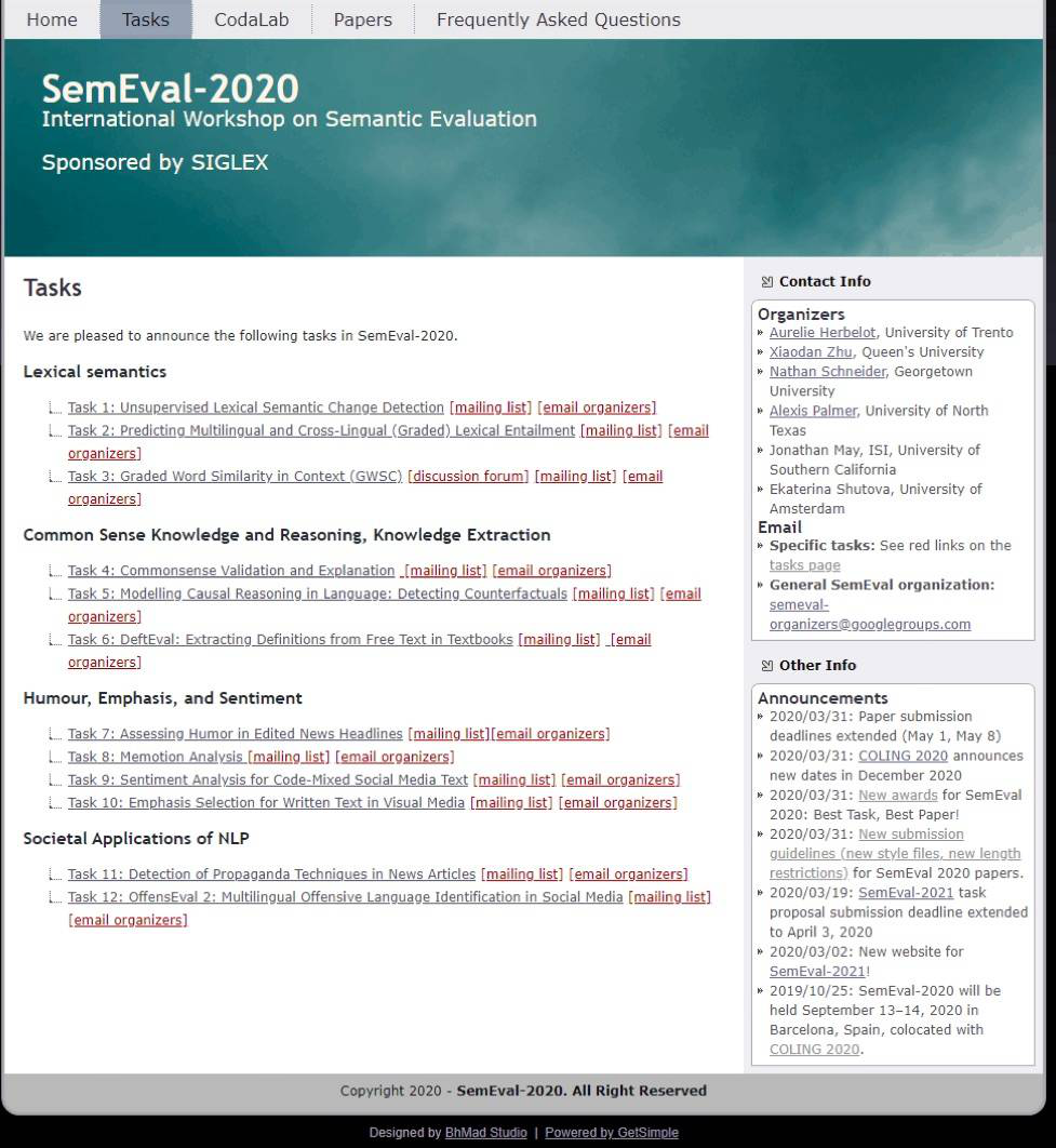 近日,由国际计算语言学会(ACL)下属的专门兴趣小组SIGLEX主办的第十四届国际语义评测比赛(International Workshop on Semantic Evaluation; SemEval 2020)于线上进行。太阳成集团tyc151cc马坤老师指导,学生姚胤楠、苏南组成的人工智能自然语言处理研究小组UJNLP在任务的评测中取得了较高名次,在85个队伍中位列第16名。