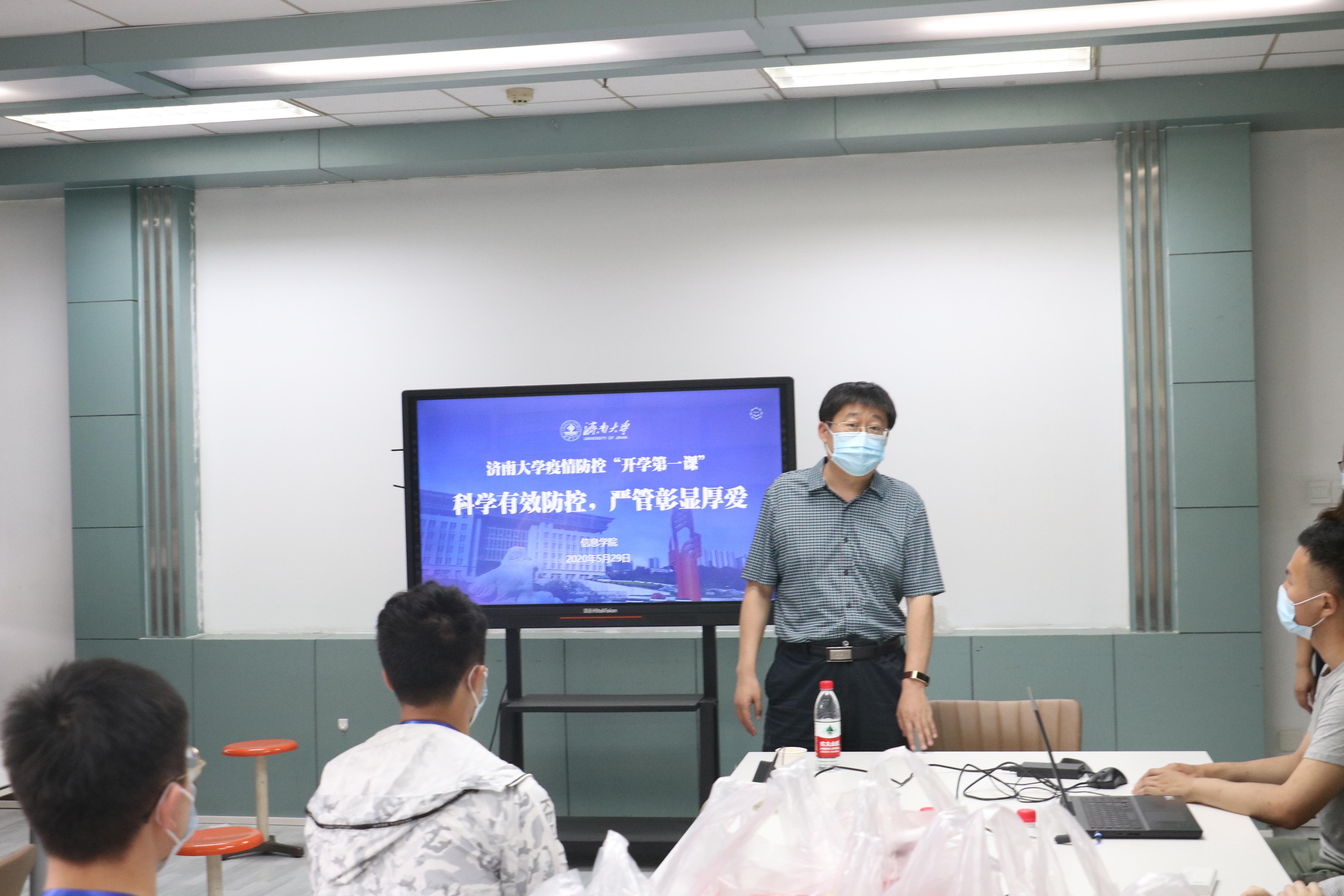 学生工作办公室主任付颖颖进行“开学第一课”授课。她带领同学们共同观看了《新冠肺炎基本知识》《六步洗手法》《含氯消毒液的配制和使用》《口罩的正确选用和使用》《太阳成集团tyc539疫情防控应急演练》《厚植家国情怀,诠释责任担当》6个防疫相关视频。结合《太阳成集团tyc539疫情防控实用指导手册》《太阳成集团tyc539学生违反疫情防控相关纪律的处理方案》,为同学们详细讲授了在校期间进出校园、宿舍防护、就餐、个人健康监测等多方面日常纪律要求,教育引导学生严格遵守党和国家关于疫情防控的法律法规,增强法治意识和爱校荣校意识。会后,学院为返校学生发放“健康大礼包”。