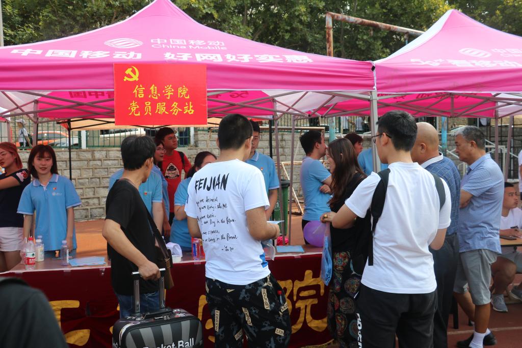 为充分发挥学生党员的先锋模范带头作用,推动学院迎新工作顺利开展,学院专门设立党员服务站,党员们统一佩戴党徽,组成党员志愿服务团队。党员迎新服务站内人来人往,有家长,也有学生,有信息学院新生,也有其他学院新生,他们或询问学院迎新点,或咨询党团关系的转接,或仅仅是坐下来休息,面对学生和家长的各种需求与问题,服务站的党员同学们无一不耐心解答,认真解惑,并亲自带路,帮忙拎物。他们胸前的党徽,不仅是党组织责任赋予志愿者们的荣誉,也是党组织赋予的责任,使我院“党员服务站”成为迎新大军中的一面鲜红的旗帜。