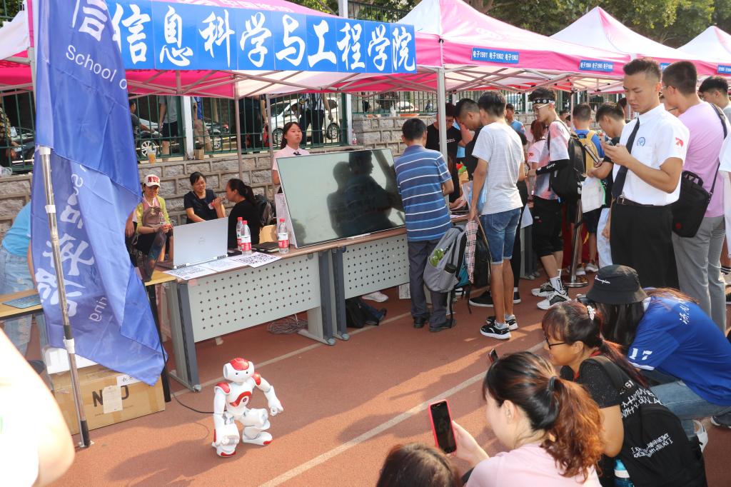 为了此次迎新工作,学院早早布置,召开迎新工作会议,提前谋划。1日早晨,迎新现场秩序井然,学院党政领导班子成员、辅导员以及班主任坐阵报到现场,耐心解答家长和学生提出的问题,用热情周到的服务迎接来自全国各地新生;各位班助也已布置好会场,整齐显眼的标牌,使新生与家长明晰报到流程。各种新颖的宣传方式和互动平台也出现在迎新现场的各个角落,成为信息学院一道亮丽的风景线。学院为每位新生定制了具有学院特色的资料袋,校徽与院徽相得益彰,“Just do IT”一语双关,处处彰显信息学院独一无二的学院品牌与人文情怀;高互动性的微信墙吸引了众多新生的注意,一条条寄寓激动心情和对大学憧憬的话语不断的在屏幕上穿梭,不时传来新生们欢快的笑语;学生会技术部开发的新生信息查询系统受到了新生们的格外关注,新生通过输入姓名即可获知宿舍信息、班级男女比例、同学地区分布等一系列同学们感兴趣的问题;智能机器人再次出现在我院的迎新舞台上,不仅能与新生们语音对话,更是唱、跳、Rap样样在行,吸引了大批“粉丝”驻足拍照;“I Love ise”立体雕塑前更是熙来攘往,彰显着同学们对信息学院的热爱之情;志愿者们热情地接待学弟学妹以及家长,耐心地帮他们办理报到手续,分享着自己对学校的认识和了解,使新生能够快速融入信院大家庭,感受到家的温暖。