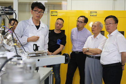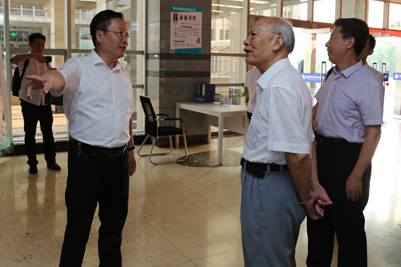 董吉文教授介绍了近年来学院在人工智能领域所做的贡献及取得的成果,邱鲁军书记陪同院士、校长一行参观了高分山东中心、山东省网络环境智能计算技术重点实验室、高性能计算中心、微纳电子器件实验室等高水平科研平台。