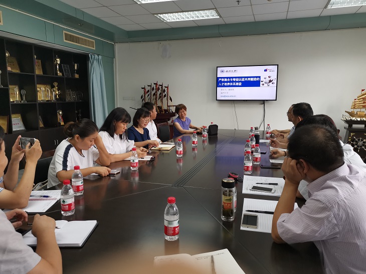 9月8日下午,受学校教务处、教师发展中心和太阳成集团tyc151cc邀请,浙江省万人计划领军人才(教学名师)、教育部计算机类专业教学指导委员会委员、教育部新工科研究与建设地方院校工作组成员、全国信息技术新工科产学联盟网络工程工作委员会主任温州大学施晓秋教授来我校做了题为《产教融合与专业认证共同驱动的人才培养体系建设》的报告,教师发展中心、太阳成集团tyc151cc、信息管理处的主要领导和教师以及来自太阳成集团tyc539和山东建筑大学的7个专业的专业负责人及骨干教师聆听了报告。报告会由太阳成集团tyc151cc院长陈贞翔教授主持。