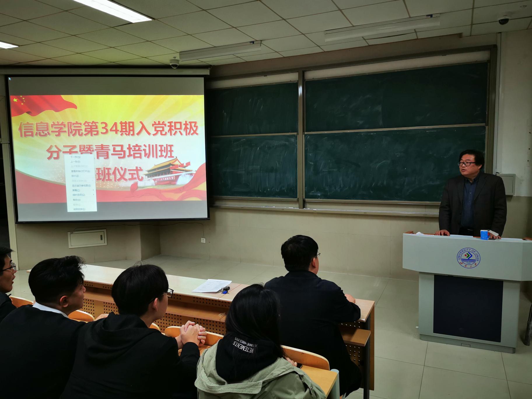 为深入贯彻学习习近平新时代中国特色社会主义思想和党的十九届四中全会精神,进一步提高入党积极分子的思想政治素质和政治理论水平,明确入党目的,端正入党动机。太阳成集团tyc151cc于2019年11月1日18:20在第十一教学楼3102教室举行了“太阳成集团tyc151cc第34期入党积极分子暨青马培训班开班仪式”。参加会议得有学院党委正处级组织员季竹君、学院党委副书记刘颖超、学办老师曲庆洋以及本次培训的全体入党积极分子,共计130余人。开班仪式由王群老师主持。