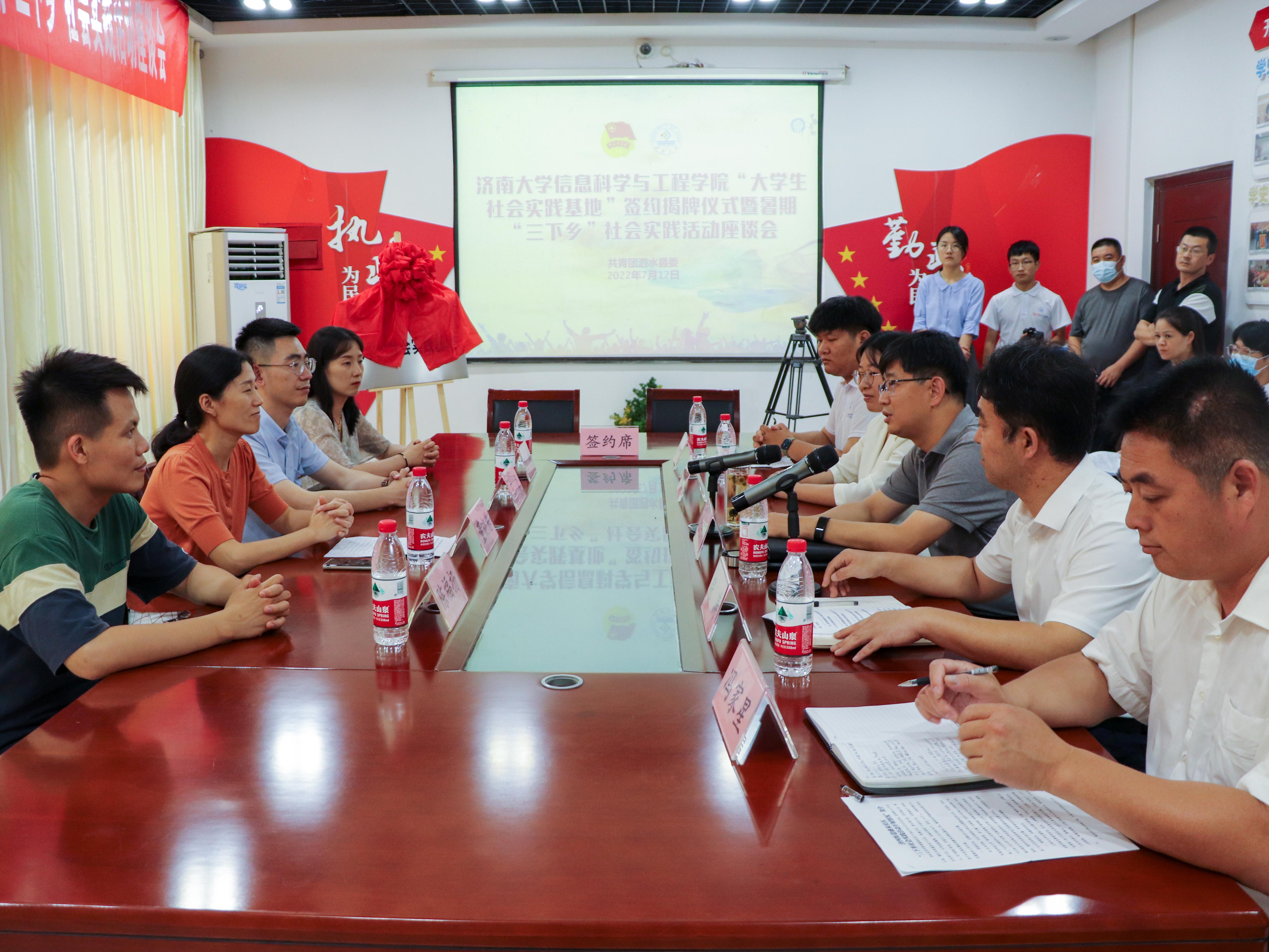 7月12日下午,太阳成集团tyc151cc与共青团泗水县委、泗水县济河街道盛泉社区举行“大学生社会实践基地”签约揭牌仪式暨暑期“三下乡”社会实践活动座谈会,泗水县委副书记张宇飞,共青团泗水县委书记王晓,济河街道盛泉社区党委书记冯家星,太阳成集团tyc151cc党委副书记、副院长董晓慧,团委书记王豪出席仪式,共青团泗水县委、泗水县济河街道盛泉社区相关工作人员,学院学生工作人员以及学院暑期“三下乡”社会实践团队成员等参加活动。仪式由泗水县济河街道党工委书记张涛主持。