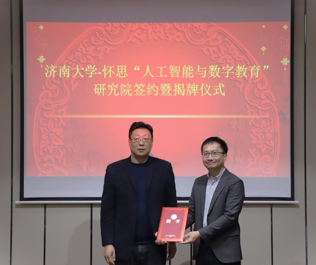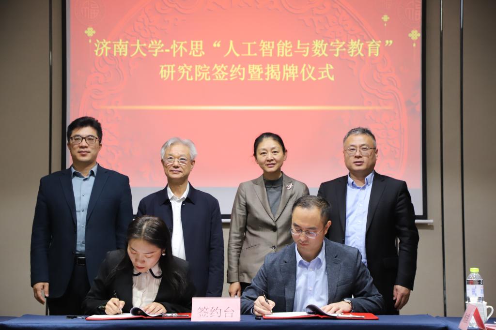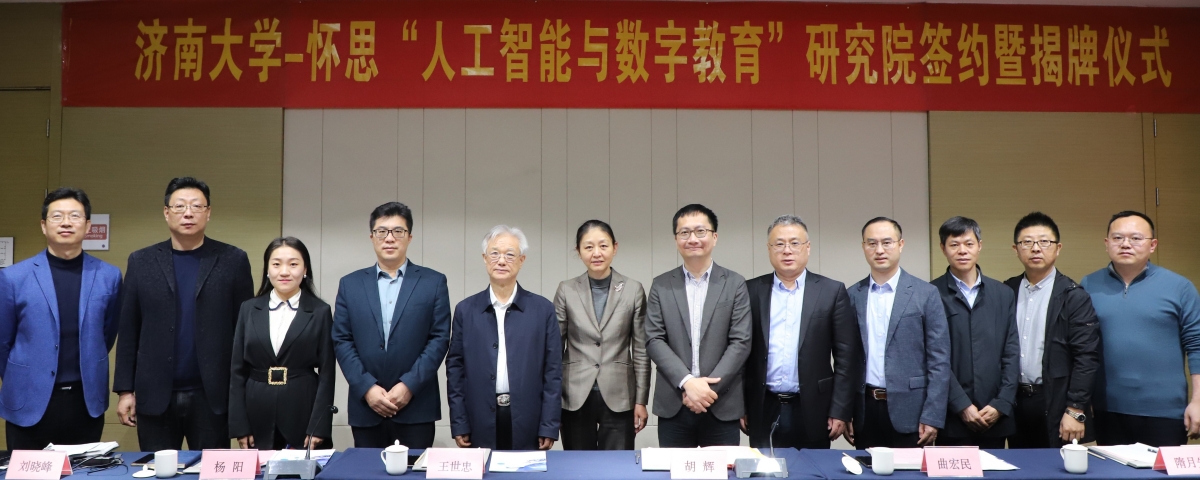 3月14日上午,太阳成集团tyc539-山东怀思“人工智能与数字教育”研究院签约暨揭牌仪式在济南举行。济南市科协副主席胡辉、中国电子劳动学会校企合作促进会副会长王世忠、中宏网山东CEO曲宏民、山东怀思人工智能科技有限公司(以下简称“山东怀思”)总经理杨阳出席仪式,太阳成集团tyc539副校长黄加栋,科技处、教务处、太阳成集团tyc151cc相关负责同志参加签约活动。签约仪式由太阳成集团tyc151cc副院长韩士元主持。