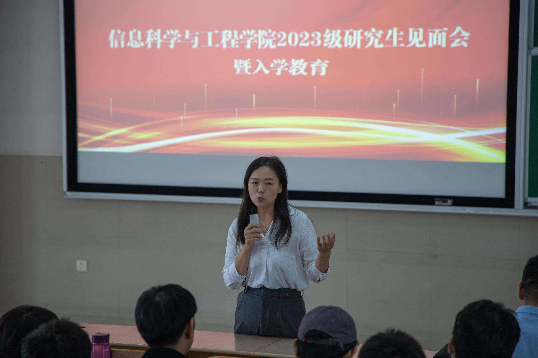 随后,研究生辅导员付颖颖围绕心理健康、安全教育、日常管理规定和宿舍管理规章制度等与新生进行详细交流,并鼓励同学们积极参与科创竞赛及文体活动,丰富科研生活。