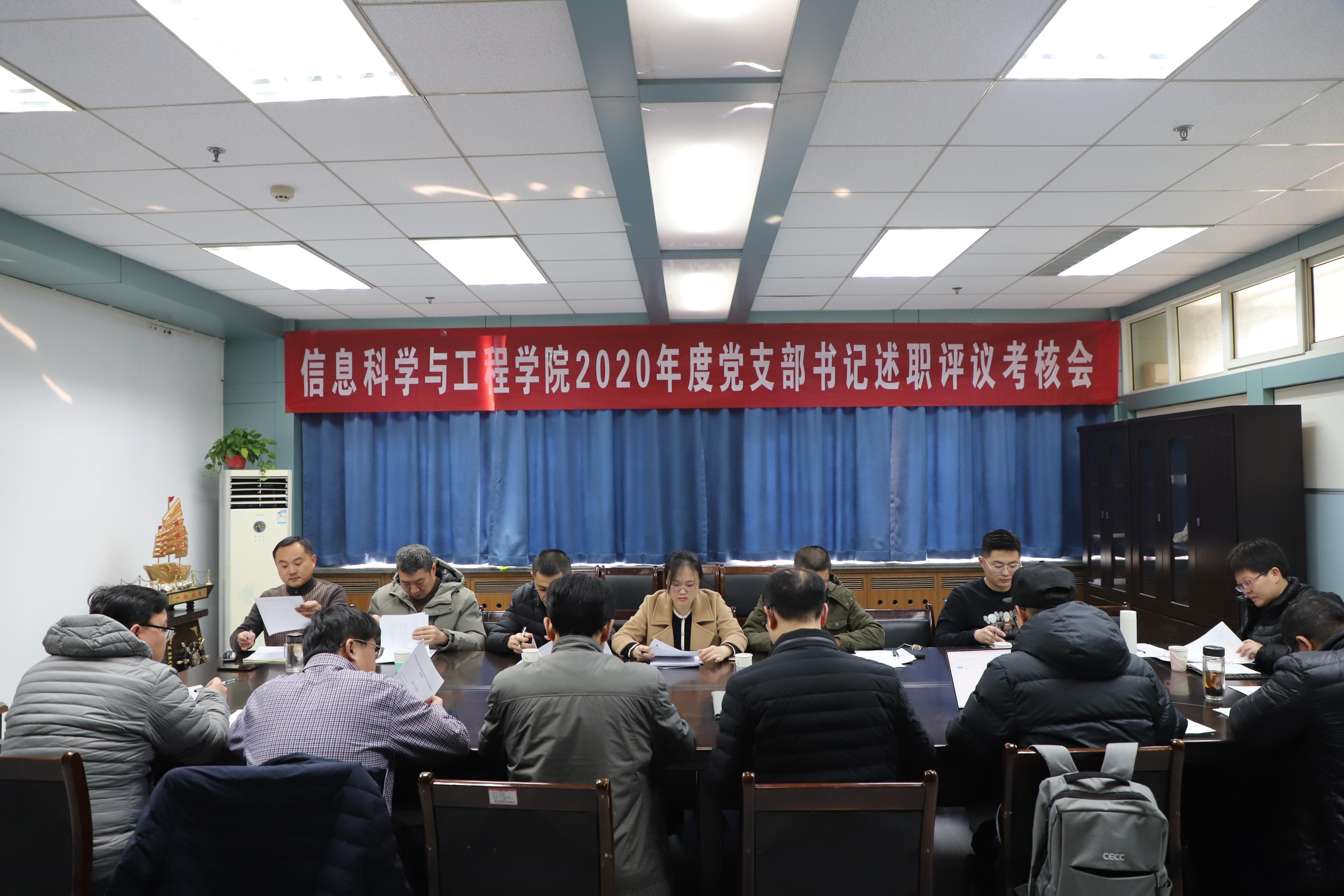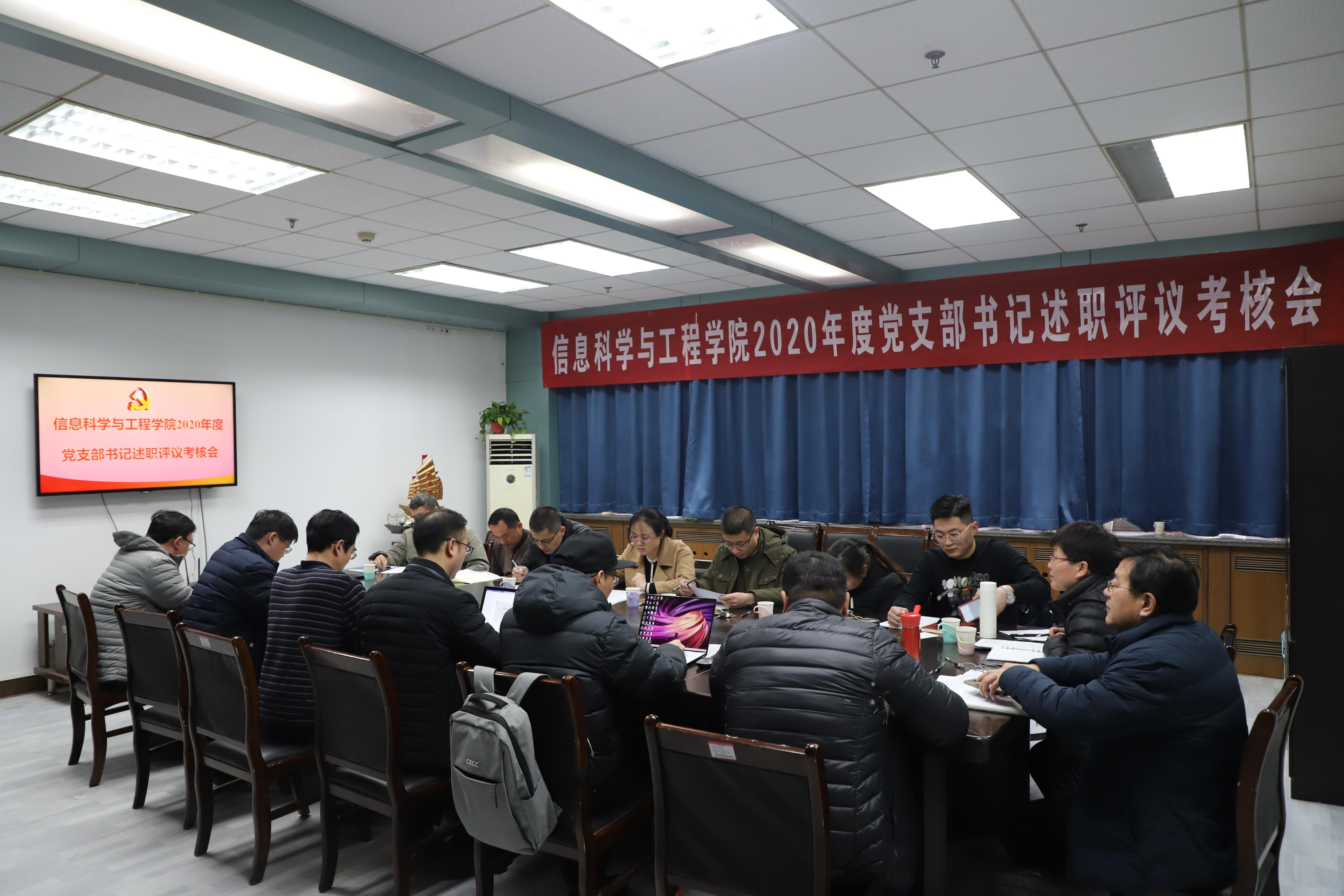 为进一步加强党支部书记抓党建工作,突出基层党组织政治功能,全面提升学院党建工作水平,根据学校党委统一部署和要求,1月22日下午,太阳成集团tyc151cc党委召开2020年度党支部书记履行全面从严治党责任和抓基层党建述职评议考核会。学院党委领导班子成员、5位教工党支部书记和5位学生党支部书记参加考核会。会议由院长陈贞翔主持。