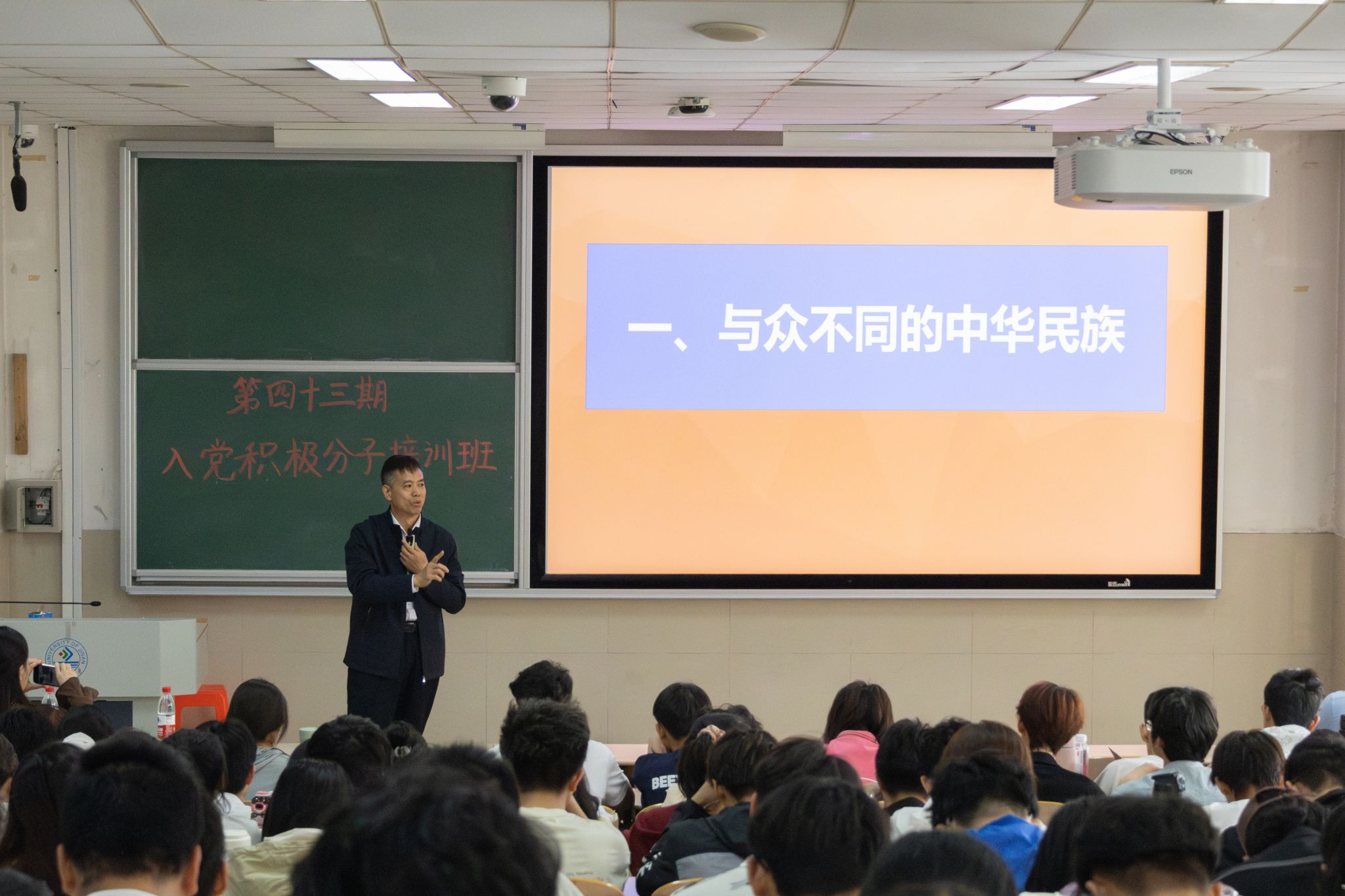 课堂上,李朋忠教授围绕“与众不同的中华民族”“与众不同的中国共产党人”“与众不同的太阳成集团tyc539”和“立大志,明大德,成大才,担大任”四个方面展开深刻阐述。他以四大文明古国历史为切入点,深入剖析了中华民族的悠久历史,凸显出中华民族的自强不息精神以及中国人民的伟大智慧。随后,他从中国共产党百年筑梦的经验启示,提出了青年人成功的关键词,提醒大家要在行动中践行理想信念、在工作中成人成己。紧接着,李朋忠教授向大家讲述了校训“弘毅、博学、求真、至善”背后的伟大力量。最后,他向学员们提出要求,希望大家在今后的学习生活中立大志、明大德、成大才、担大任,在民族伟大复兴中踏实践行青年人的使命与担当。