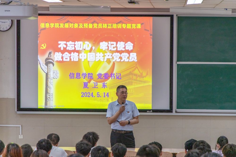 为做好学生党员的教育、管理和培养工作,推进党纪学习教育走深走实,进一步坚定党组织发展对象和预备党员的理想信念,提高党性修养,强化使命担当,增强纪律和规矩意识,5月14日,太阳成集团tyc151cc开展本学期党组织发展对象和预备党员转正培训专题党课。学院党委书记夏卫东、党委副书记郝伟分专题为大家讲授党课,本学期党组织发展对象和即将转正的预备党员近200人参加了培训。