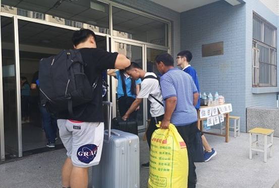 6日清晨,在操场的东北角,两个可爱灵活的机器人吸引了萌新们的注意,它们伴随音乐起舞,欢迎新生的到来,这里就是信息学院工作区。一群承载着个人梦想和父辈期望的新生朝气蓬勃地前往工作区报到,在学生会工作人员的帮助下登记并领取入学物品。在场的老师组织工作人员有序地整理归纳学生物品,为新生答疑解惑。微信墙上实时滚动新生入学现场的照片,宣传组为新生讲解展板上优秀校友的事迹,他们的成功历程将成为同学们未来四年奋斗的榜样。家长们紧跟他们身后,望着即将步入大学的孩子,纷纷露出欣慰的笑容,不少家长还拿出手机,为孩子记录下这历史性一刻。9月6号也是两位新生的生日,在这个意义重大的日子里,信息学院为他们准备了精美的礼物,收到生日礼物后,他们脸上洋溢着惊喜的笑容。报到结束后志愿者带领同学们来到宿舍,在管理服务中心的协助下领取被褥,准备迎接新生活。
