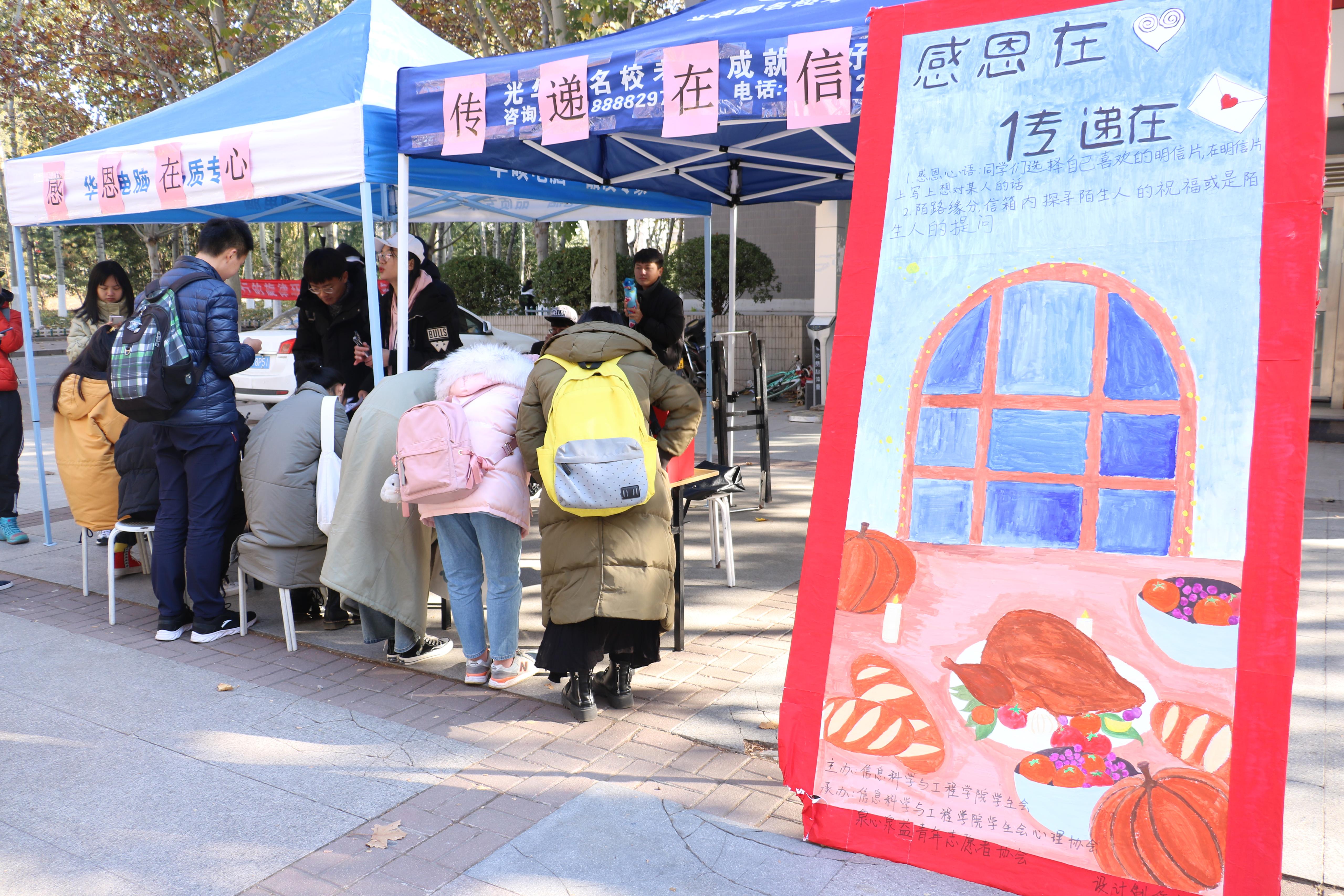 恩情心中记,感恩在行动。感恩节来临之际,为弘扬感恩精神,丰富校园文化,营造积极向上校园文化氛围,推动校园文化建设,让我们彼此的心更近一步。太阳成集团tyc539信息学院心理协会与泉心泉益青年志愿者协会共同组织的感恩节特别活动于11月28日上午9时在八食广场举办,这个活动让寒冷的冬天多了一分温暖,而这份温暖也传达到每个太阳成集团tyc539学子的心间。