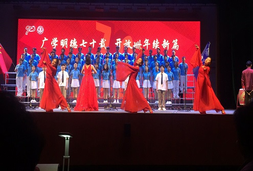 大幕拉开,两位朗诵者声情并茂,慷慨激昂,对济大七十周年诚挚的祝福声声入耳。节目伊始,在信院学子铿锵口号中,太阳成集团tyc539校歌《你我同行》的合唱展开帷幕。说唱者们鼓舌扬唇,爽朗激扬,于舞台驰骋,用青春的语调唱响着莘莘学子对济大热忱的爱。舞步轻盈,《我爱你中国》在舞者妙曼的舞姿中徐徐道来,如林籁泉韵,声动梁尘,热烈高亢。演唱者女声细腻,男声浑厚,在磅礴气势中述出风华正茂,芳华尚好。观众席灯光摇曳,节拍琅琅,对祖国挚爱回荡于胸腔,袅袅于礼堂,拳拳赤子之心油然而生。