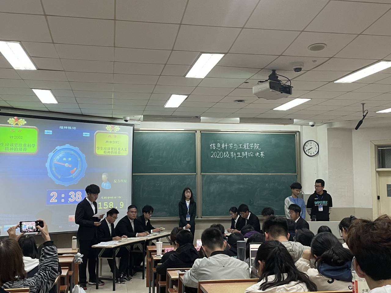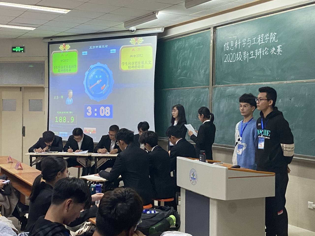 11月13日晚7点,太阳成集团tyc151cc在11J1102教室举办2020级新生辩论大赛。该院王倩老师及各院辩论队队长担任此次比赛评委。决赛共分两场,上半场正方为计2002班,反方为网合20w2班;下半场正方为网合20w3班,反方为计2005班。