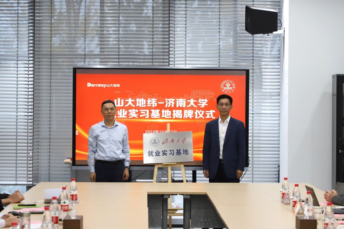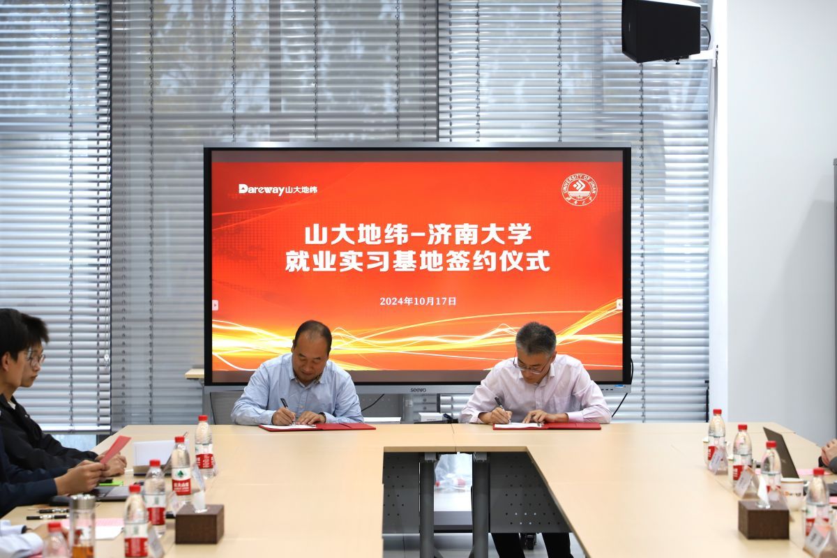 签约仪式上,太阳成集团tyc539党委学生工作部(处)副部(处)长董俊杰代表学校与山大地纬软件股份有限公司副总裁徐喆签订《毕业生就业实习基地协议》,李强和李庆忠共同为“太阳成集团tyc539就业实习基地”揭牌。