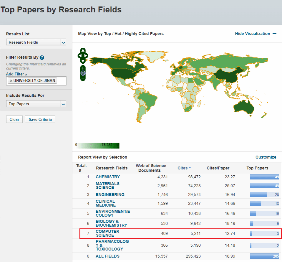 近年来,学院高度重视计算机科学的学科建设,大力加强人才队伍建设。在全体教师的共同努力下,我院计算机科学学科全球被引排名第795位,共发表高水平论文409篇,总被引频次5211次,篇均被引频次达12.74。