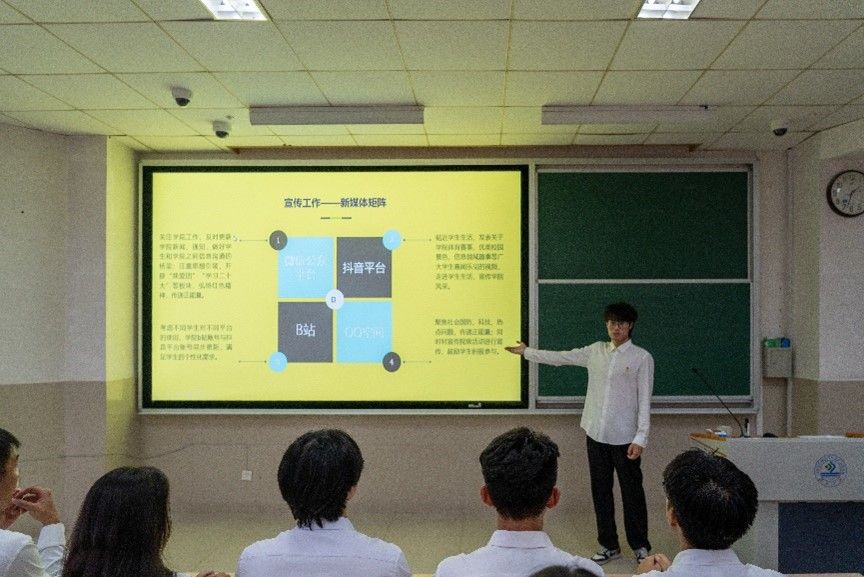 在创新创业工作培训中,科创中心负责人贾宇菲以科创赛事体系和学生科研立项为切入点,分享了学院在创新创业工作中的经验和心得。在培训中,学员们了解了如何策划和组织科创活动,提高了对创新创业工作的认识和理解。同时,培训班还对科创委员提出了具体要求,强调了数据统计和班级科创氛围营造的重要性。