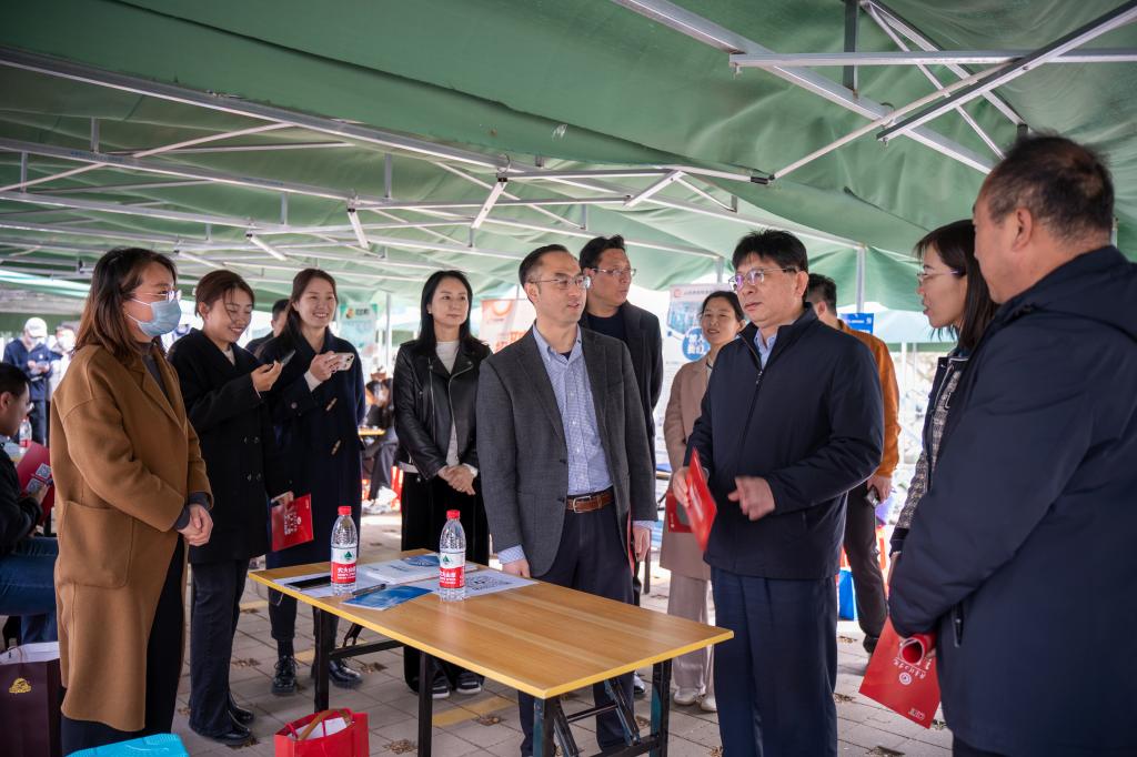 招聘会现场,杨景波一行与参会单位和求职学生亲切交流,听取用人单位对我校人才培养、就业工作的意见建议,深入了解用人单位发展状况、人才需求情况,询问关怀毕业生的就业意向与求职进展。同时,杨景波向一直以来关心和支持太阳成集团tyc539教育教学事业发展的社会各界人士表示衷心的感谢,并希望通过此次招聘会搭建用人单位和毕业生双向选择平台,为高校毕业生提供更多的就业选择和政策支持。